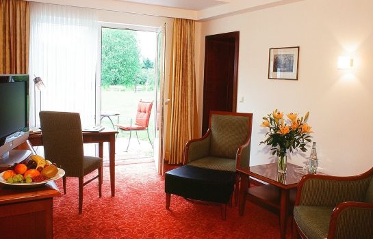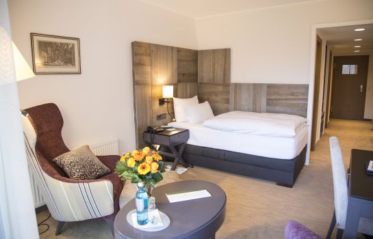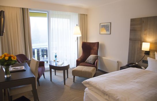 Die Zimmer im Hotel Jagdhaus Wiese verfügen alle über ein modernes Bad und Sat-TV. WLAN können Sie buchen.